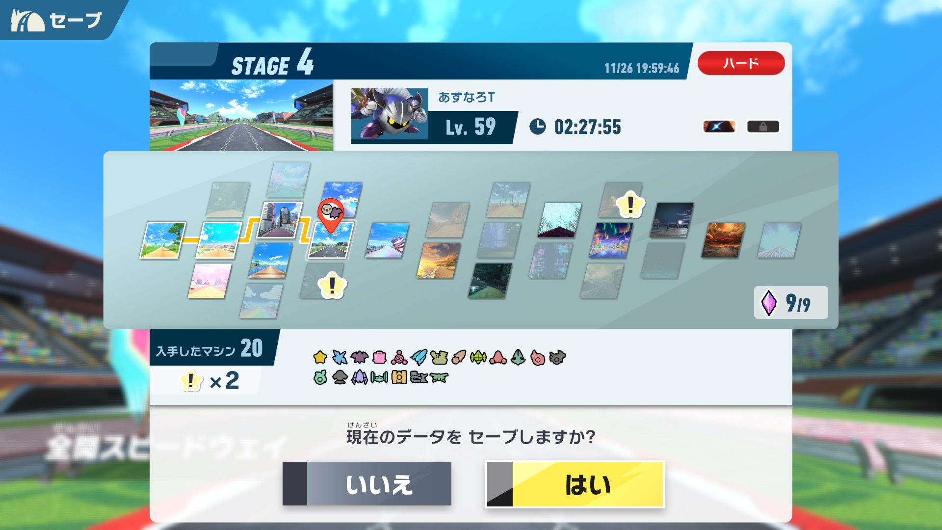 セーブ画面でやっと気づいたんですが、新しいマシンが手に入るステージがちゃんと明記されてるじゃないですか!そして私の進む道が間違っていたことに気づく…。時すでに遅し、3周目プレイが確定してしまったな…。まあクリアチェッカー140個埋めるのもやらなきゃなので地道に行きます。