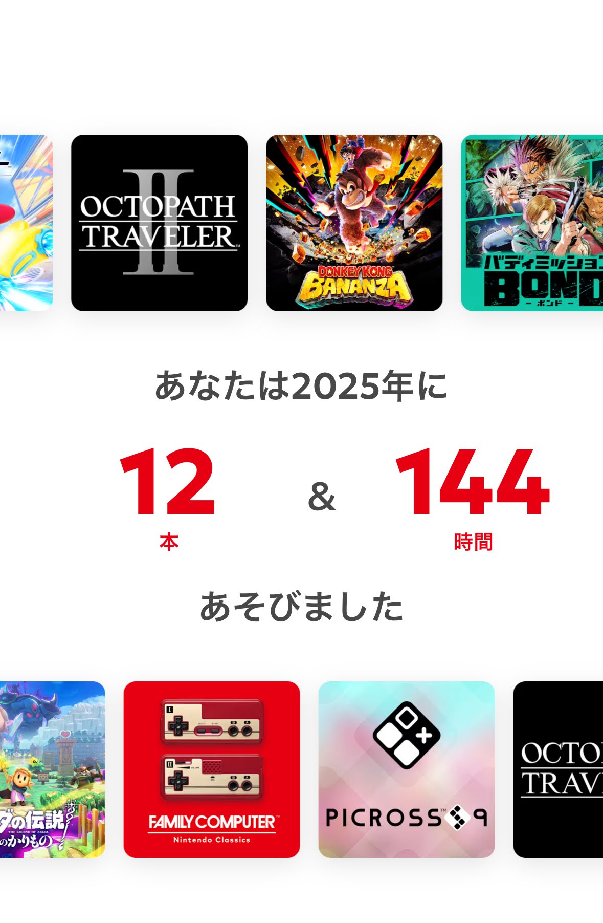 なにげにロケハン起動しかしてないはずのオクトラ2を12時間もプレイしていて驚きでした。そんなに…?そして2025年はピクロスあんまりやってなかったからランキングに食い込んでませんね。